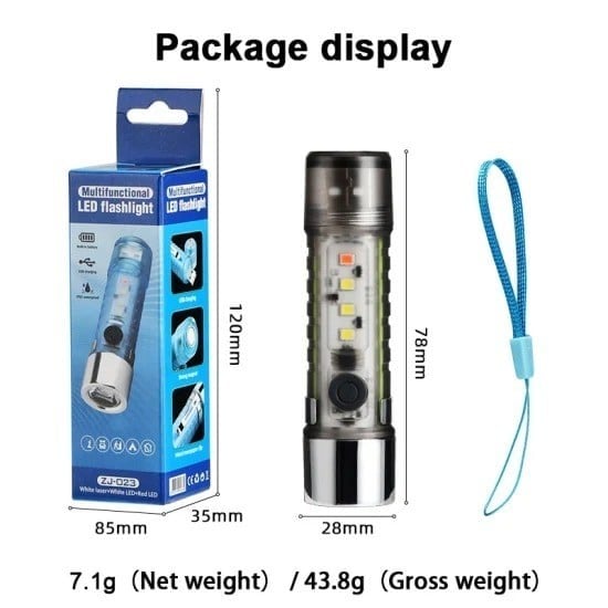 مصباح كشاف محمول وقابل للحمل بالجيب مع لومينز عالي - يعاد شحنه عن طريق Usb ميني كشاف مفاتيح يومي ولرحلات الظهر والتخييم والمشي لمسافات طويلة